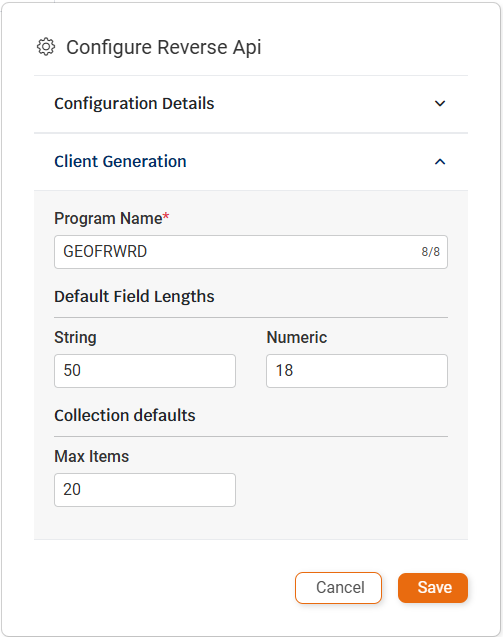 - Globally: by updating the default values in the method’s Configure Reverse API window.